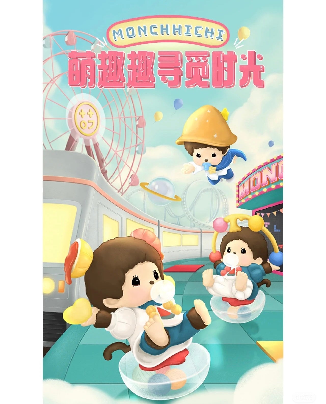 🧸 Nostalgic designs – Monchhichi dressed in classic childhood outfits with playful accessories.